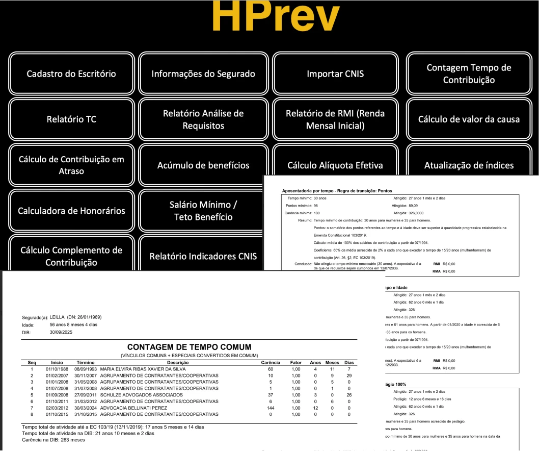 O HPREV é a ferramenta que eu desenvolvi em parceria com Eduardo Pezzinato para simplificar e automatizar os cálculos previdenciários.